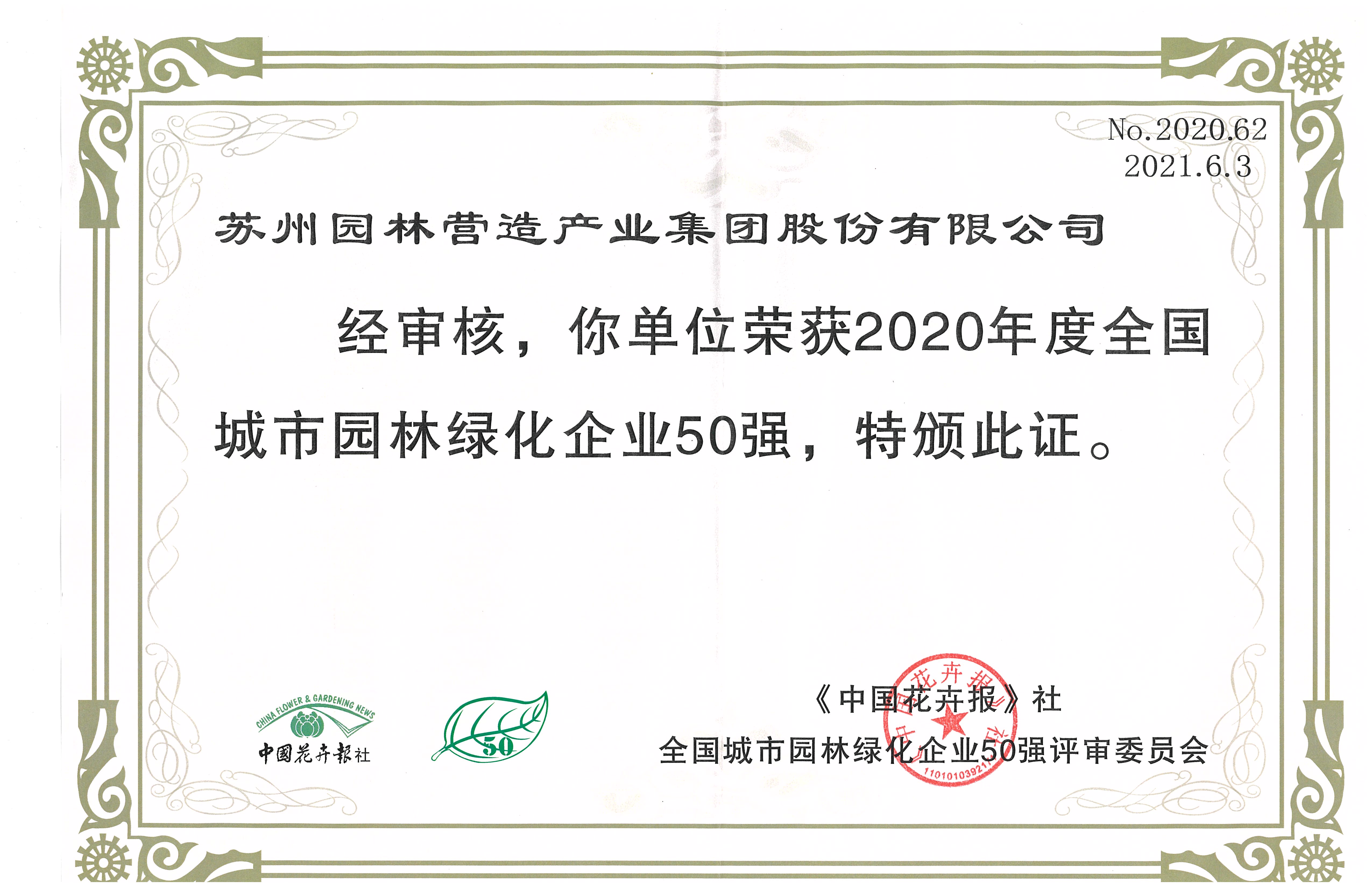 喜報 | 蘇州園林產(chǎn)業(yè)集團榮獲“2020年度全國城市園林綠化企業(yè)50強”